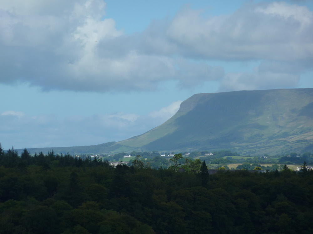 Oben, the Crimean War Tree, Pettigo, Nordirland, gepflanzt zum Gedenken an das Ende des Krimkrieges 1856, sowie der Croontypruglish (umgangssprachlich "Eagle's Rock"), eine Felsformation, die von der R280 aus gut sichtbar ist. Unten, Ben Bulbin, kommt näher und näher und näher... und beim nüchsten Besuch in Irland muss es einfach klappen, mit einer Wanderung auf den berühmten Tafelberg. Vom Doonee Forest aus gesehen, mit Blick über den Lough Gill.