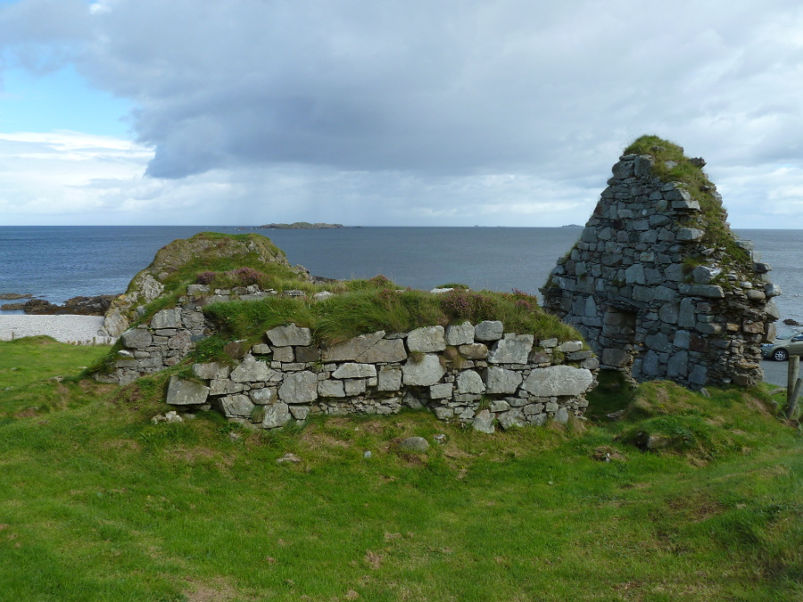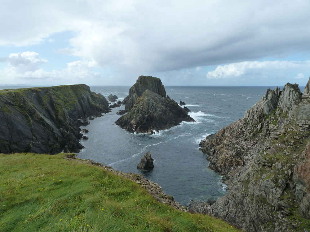 Oben, The Wee House of Malin (eine Grotte, seit alten Zeiten als heiliger Platz verehrt), daneben eine Kirchenruine aus dem 15. Jahrhundert; unten, Hells Hole (Höllen Loch) und Aussichten auf der Malin Halbinsel.
