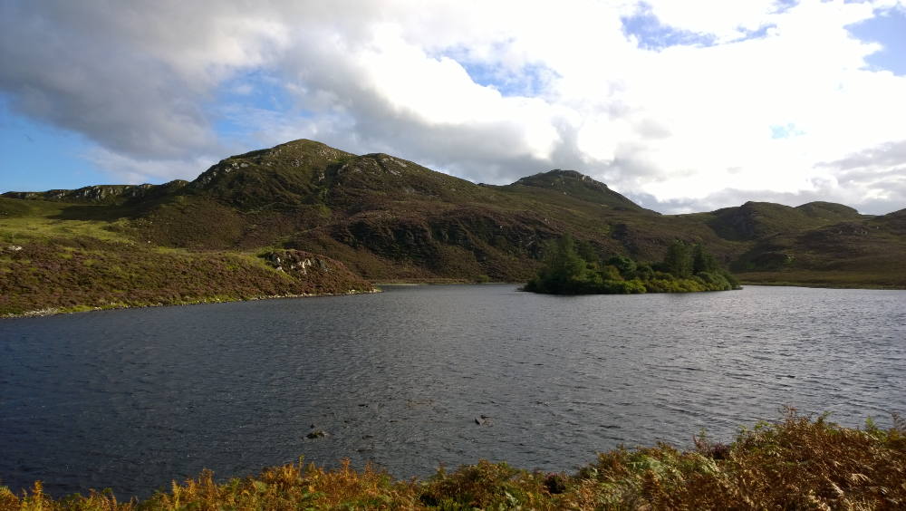 Oben, St Mura's Cross, Fahan (datiert zwischen 7. und 10. Jahrhundert), und Klosterruine daneben aus dem 17. Jahrhundert, unten, ein Inselparadies im Lough Naminn, mehr dazu unter Geocache GC5349Q Island Paradise.