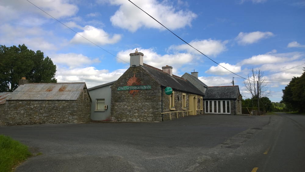 Oben, Ruinen entlang der Rinn Dúin Halbinsel, unten The Uisneach Inn - Leider ist der Hill of Uisneach (das spirituelle Zentrum des alten Irland) selbst nicht zugänglich, da die Felder Teil einer aktiven Farm sind.