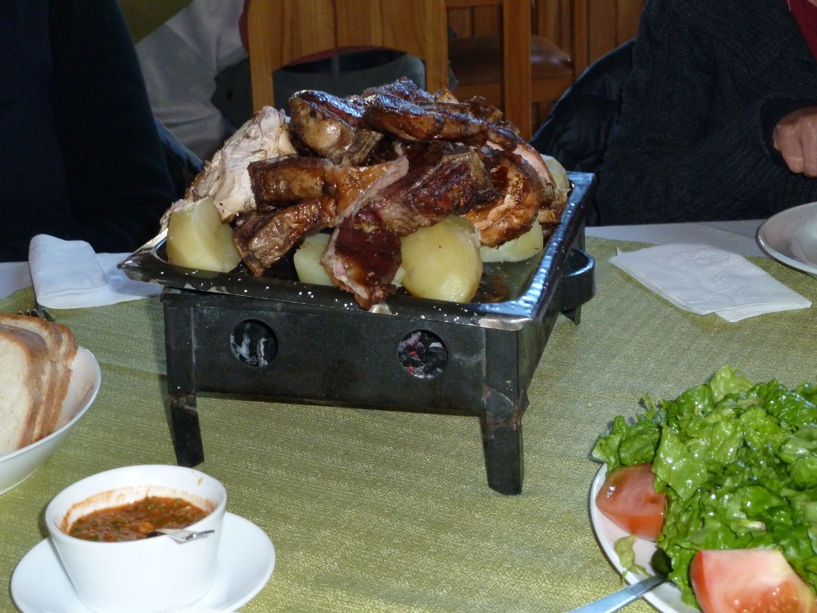 Das Mittagessen gab es in einem Restaurant am Seerand, in herrlicher Lage und mit viel Fleisch und einem Glas Wein dazu!