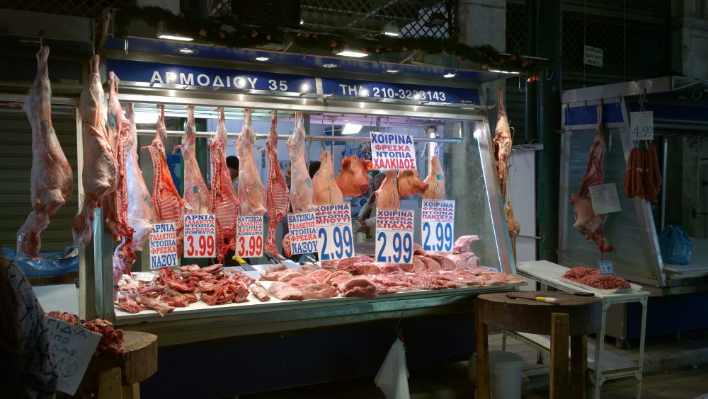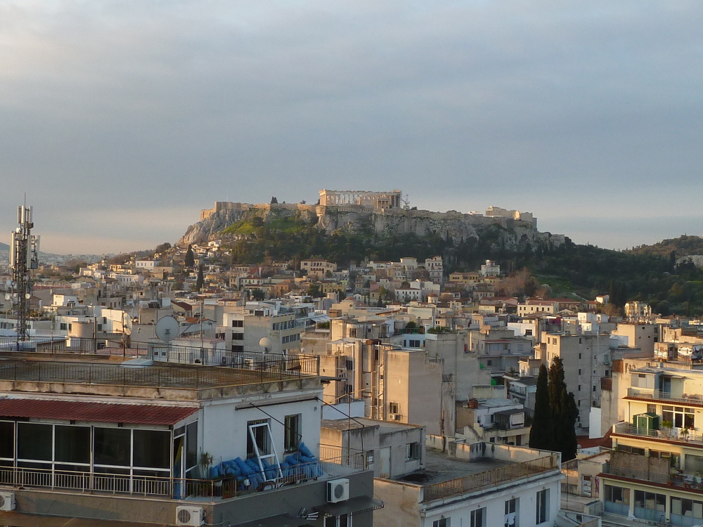 Bei meiner Rückreise habe ich eine weitere Nacht Station in Athen gemacht, im Athens Center Square Hotel, gegenüber dem Gemüsemarkt und neben dem Fleischmarkt: da wo das wahre Leben spielt. Von der Dachterrasse des Hotels hat man einen tollen Blick über die Stadt, natürlich auch zur Akropolis. Obwohl das Hotel ausgebucht war, war ich doch der einzige, der den Sonnenaufgang von dort genossen hat.