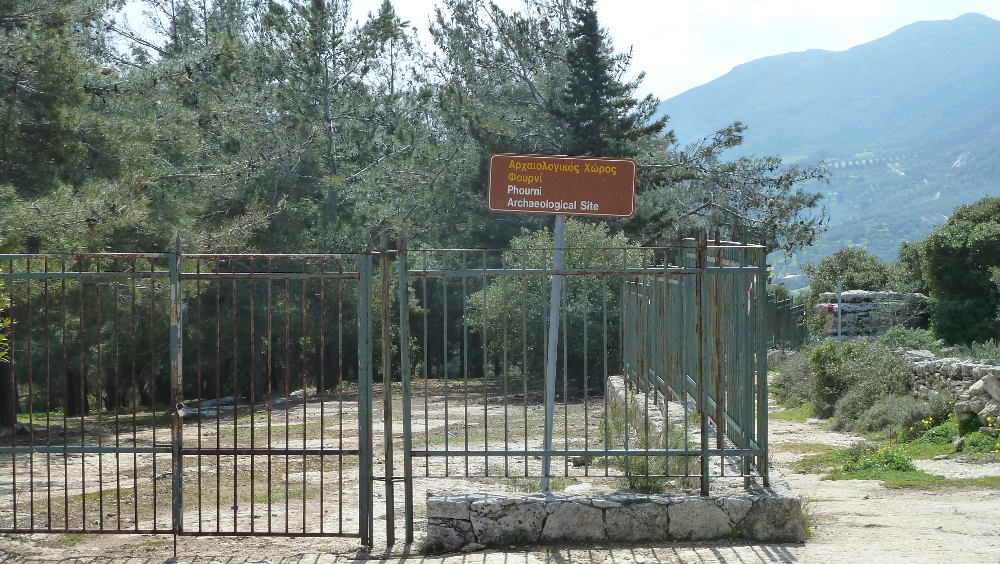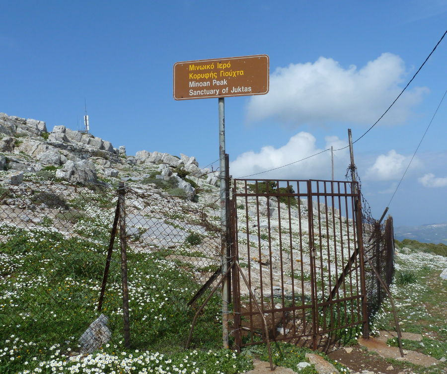 Oben: Fourni - die archäologische Stätte ist zwar geschlossen, aber auch ausserhalb gibt es eindruckvolle alte Gemäuer; Startpunkt der Stätte von Vathypetrol; unten, die Juktas Höhe mit eindrucksvoller Aussicht sowie die imposante Aussicht von Anemospilia (anklicken zum Vergrößern) sowie Frühlingsboten neben der Antikenstätte.