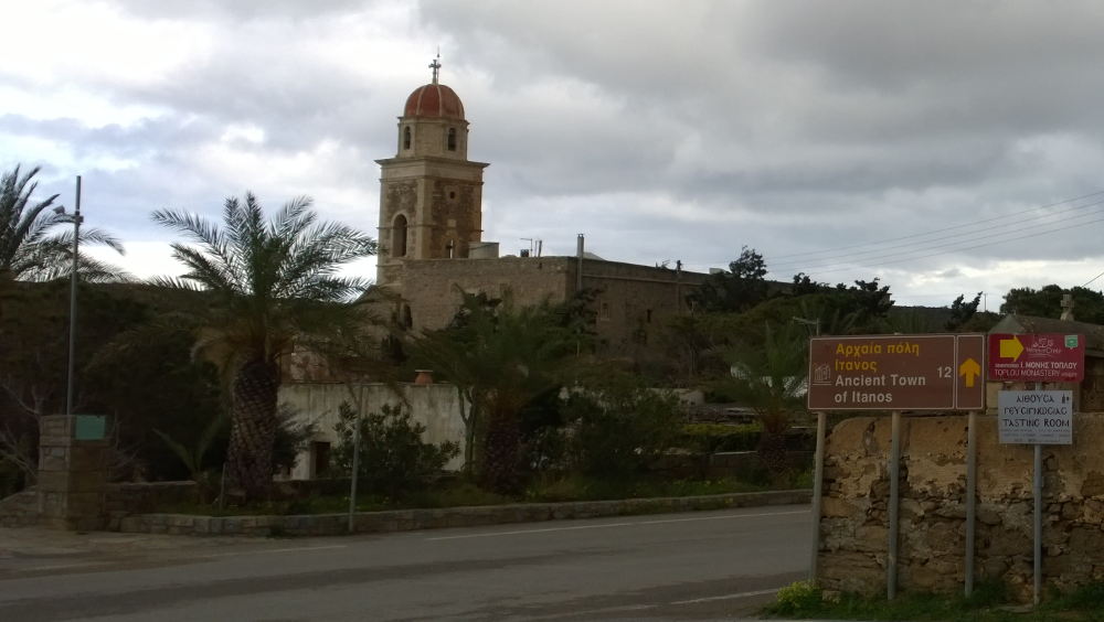 Unten, Kloster Moni Toplou mit M&auuml; Aussicht von Itanos sowie der Eingang zur Schlucht der Toten bei Kato Zakros.