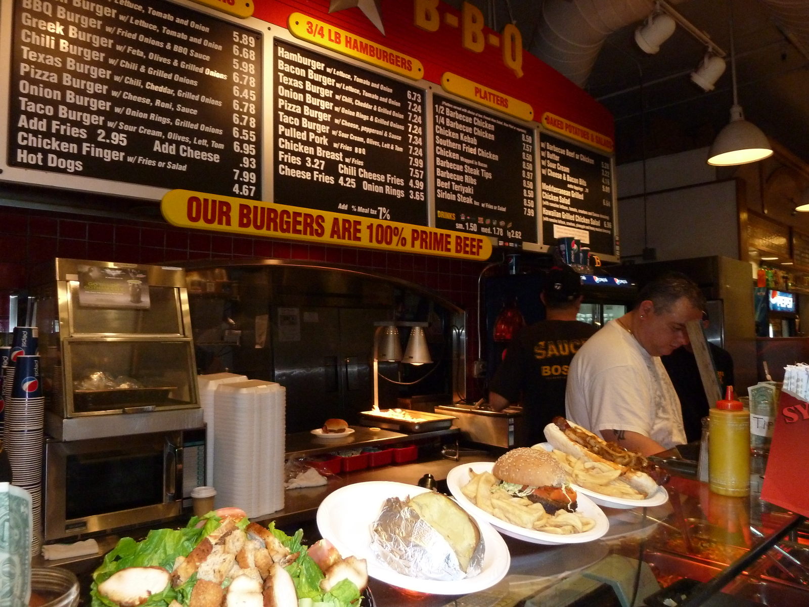 Market: einen leckeren ersten Burger auf meiner Reise.