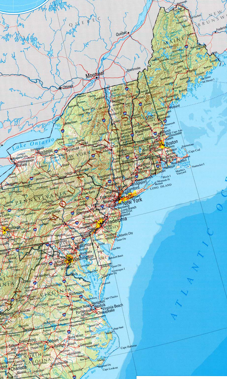 Karte der US Northern Eastcoast Die Landkarte ist fast zu lange für eine Seite! - Kartenquelle: Sammlung der University of Texas (Ausschnitt)