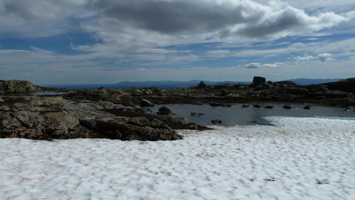 Von oben, die Gipfelhütte kommt näher und näher, zumindest im Zoom... und nach einigem Schweiss auch tatsächlich, übriggebliebenes Schneefeld - Mitte August; unten, phantastisches Panorama in alle Richtungen.