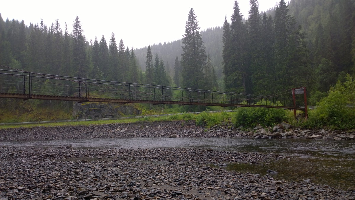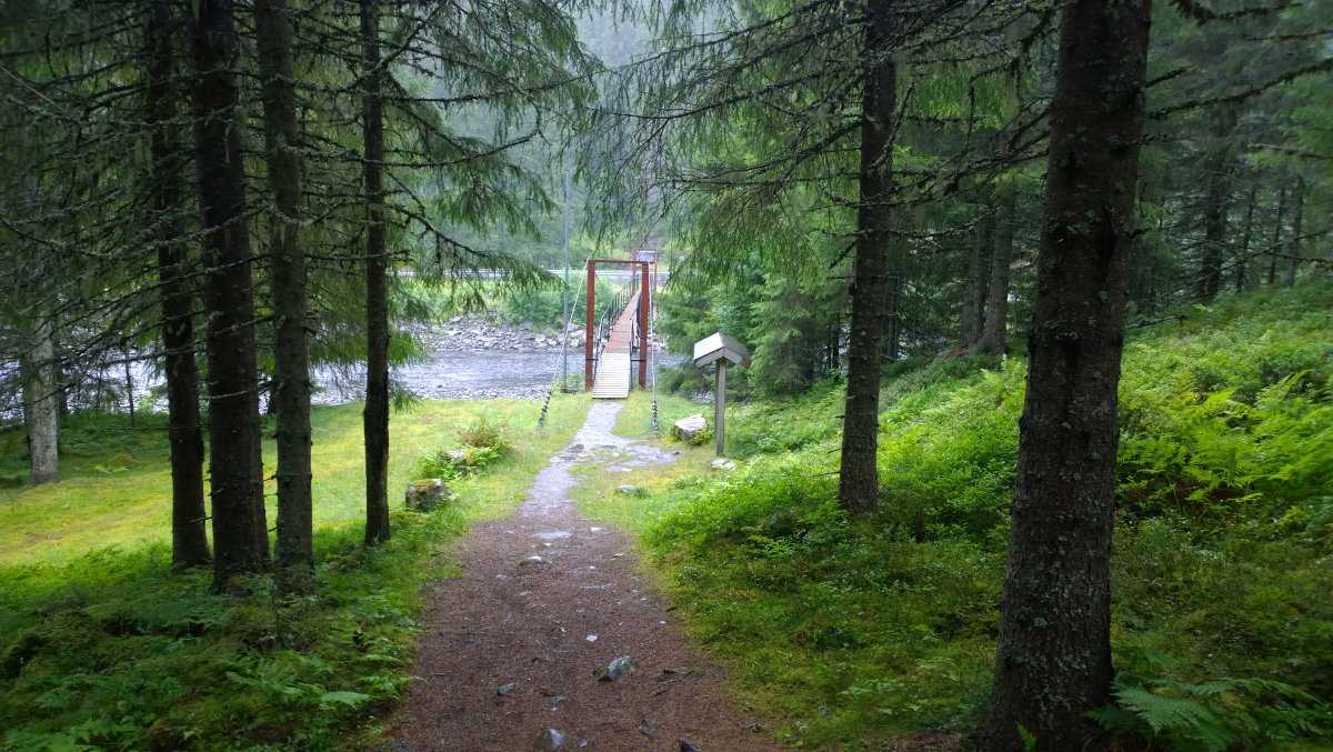 Zum ersten Mal nach Norwegen! - Leider war der Empfang im Nachbarland reichlich regnerisch. Dennoch ist die Landschaft auch dann wirklich sehenswert. Zunächst ging es entlang der schwedischen Landstrasse 322 ("Karl-Johans-Weg") und schliesslich weiter in Norwegen entlang der Schlucht des Jämtlandsvägen, d.h. Landstrasse 72. Vor der Weiterfahrt zum Hotel hatte ich noch eine Fika in der Munkeby Herberge - unweit der Munkeby Klosterruinen -, und habe mich dabei auch reichlich mit lokalen Trockenwurstwaren eingedeckt.