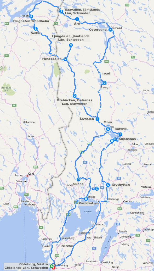 Karte Schweden-Norwegen Reise 2017 - ungefährer Reiseweg -