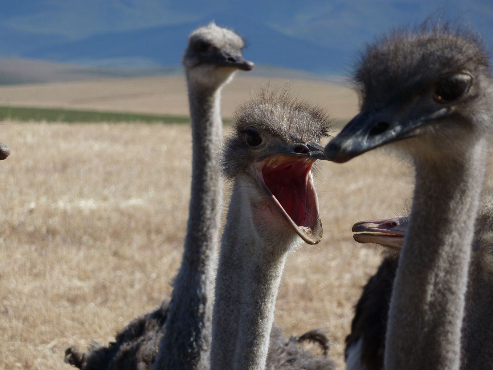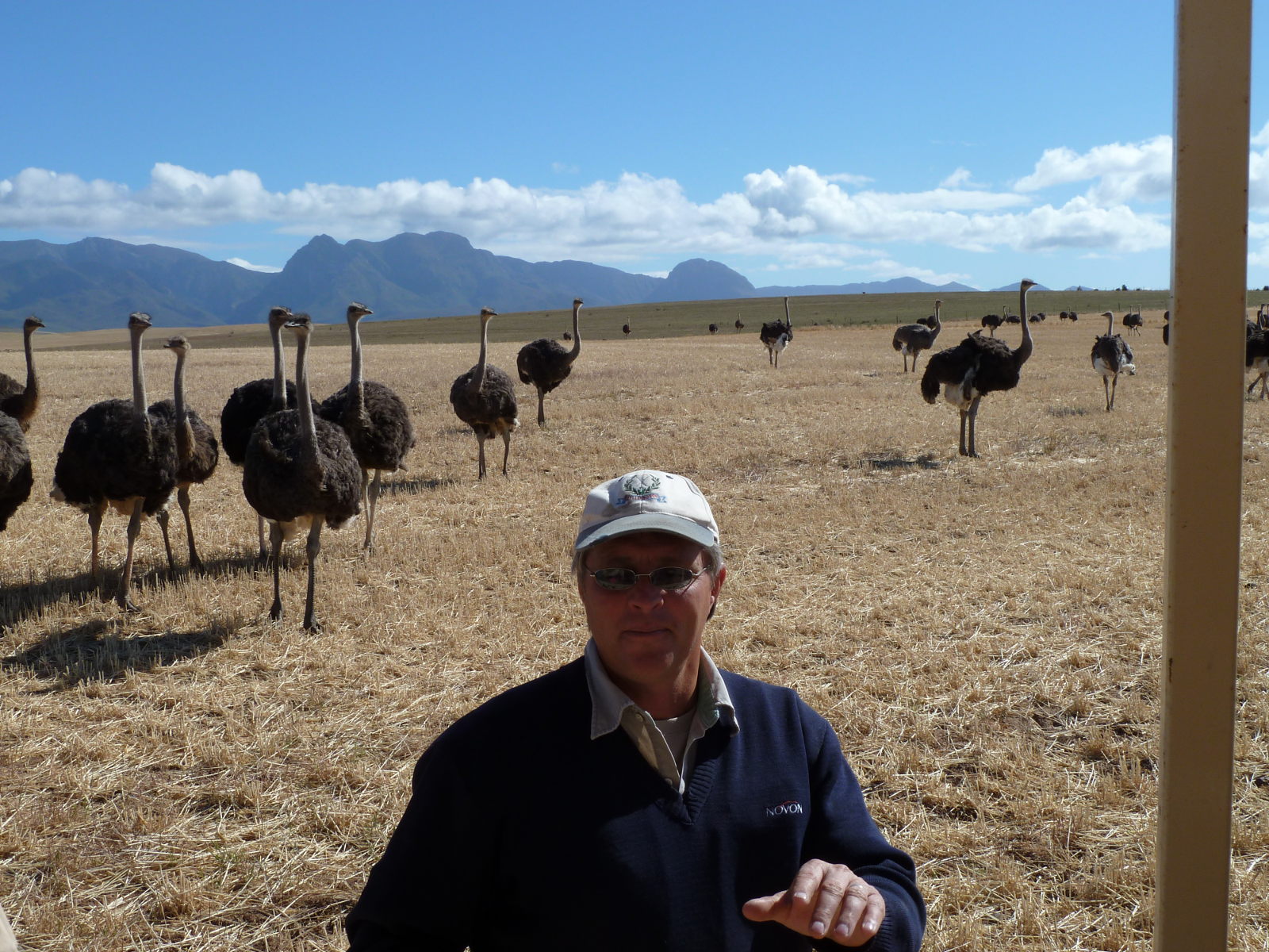 Schliesslich bin ich an der Skeiding Guestfarm angekommen: einer grossen Farm, auf der sowohl Getreide-/Korianderanbau als auch Viehzucht (Rind, Schaf bis hin zu Straussen) betrieben wird. Da dies denoch nicht aureicht, um finanziell über die Runden zu bekommen, unterhalten die Besitzer auch mit viel Leidenschaft ein Gästehaus: so gibt es am Abend ein leckeres Abendessen mit Straussensteaks, gegrillt über dem offenen Kamin, und am Morgen gibt es für die Gäste eine spannende Rundfahrt über die Farm.